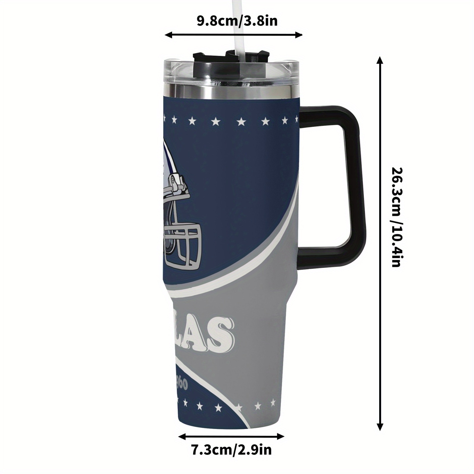 This 40-oz Dallas Cowboys Football Themed Stainless Steel Travel Tumbler is designed for users who prefer large capacity drinkware with a city sports theme. It features insulated stainless steel construction suitable for hot and cold beverages during daily routines. The reusable metal structure supports repeated use without electricity.