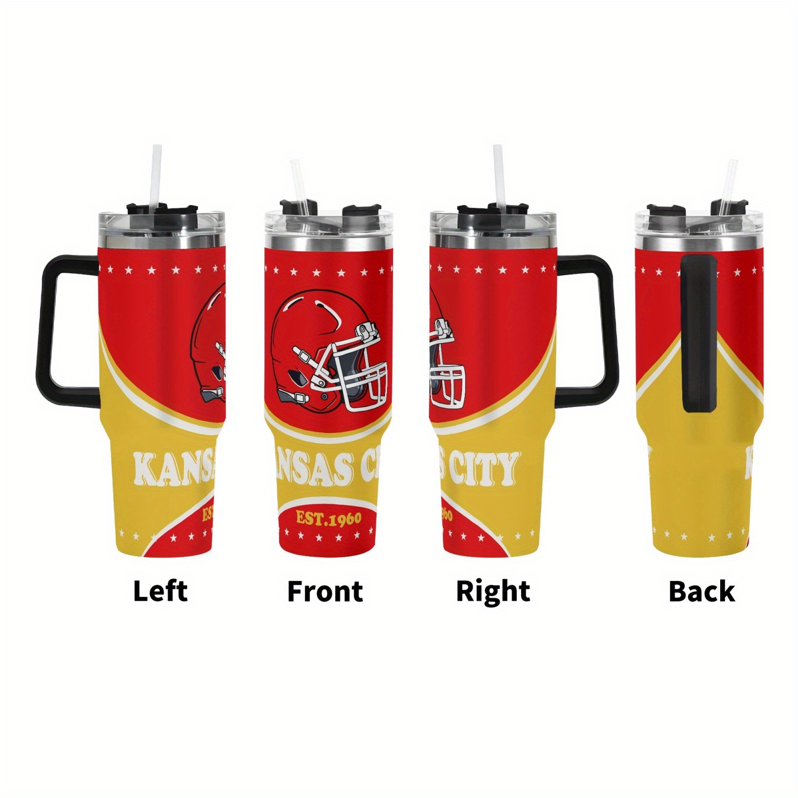 This 40-oz Kansas City Chiefs Team Football Themed Stainless Steel Travel Tumbler provides a reliable solution for large capacity beverage needs. The 40-oz size supports extended hydration at home, during travel, or outdoor activities.