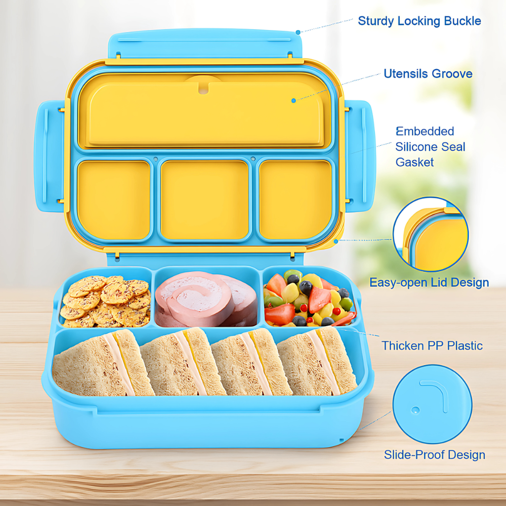The entire container is constructed from good-quality PP plastic that is BPA-on the house and food-grade. The thickened plastic adds strength to resist drops and everyday wear. You can pack food with peace of mind knowing it meets standard food safety criteria.