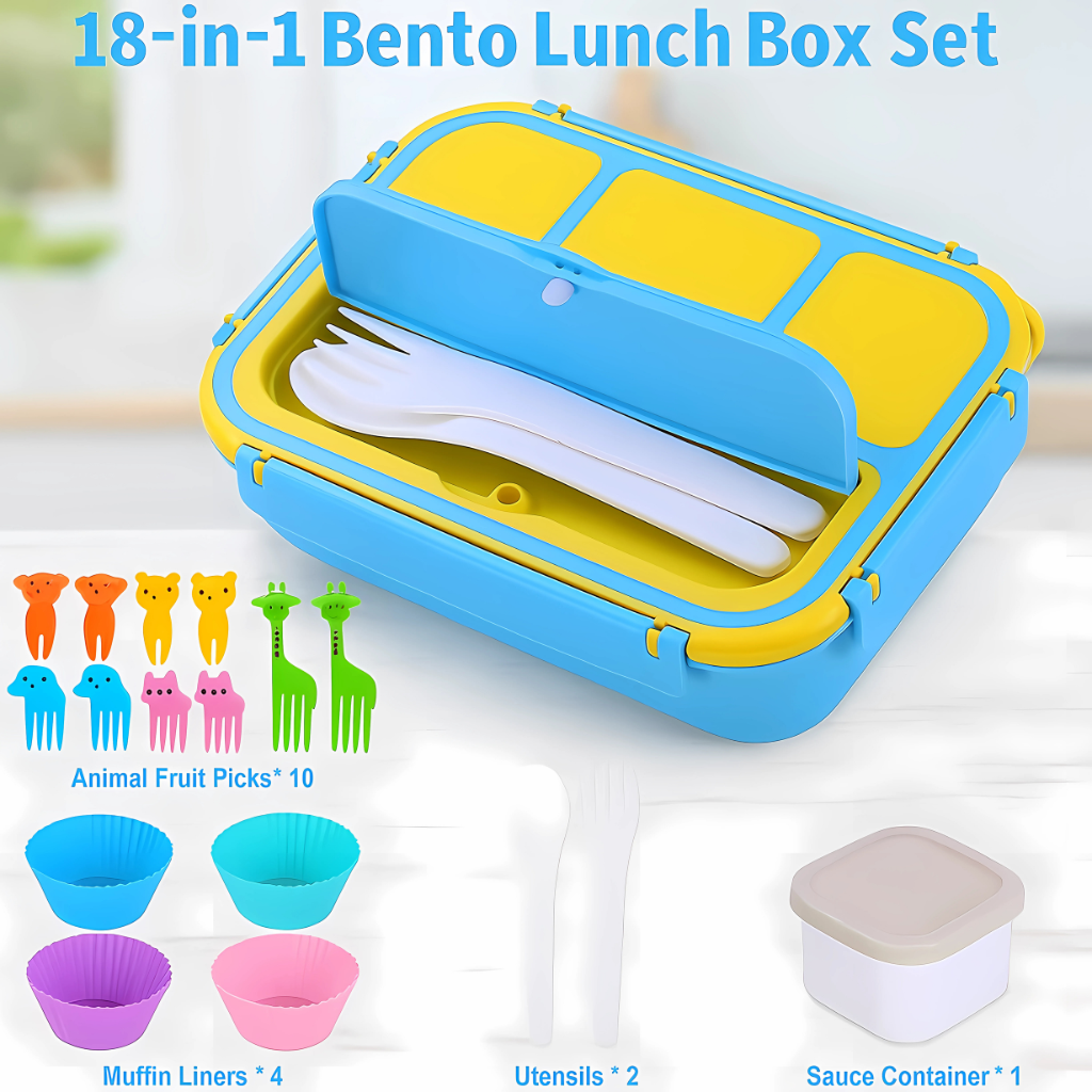 This lunch box comes with utensils, a sauce jar, and muffin liners to simplify portioning and food organization. Whether for work, school, or meal prep, this is a compact and efficient solution for storing and transporting your meals.