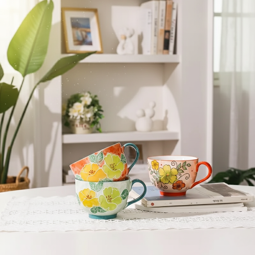 The Decorative Ceramic Coffee Cup with Floral Patterns for Home and Gifting serves as a multi-use item for drinks and presentation. Its patterned surface and clean structure allow it to adapt to different interiors and informal gatherings.