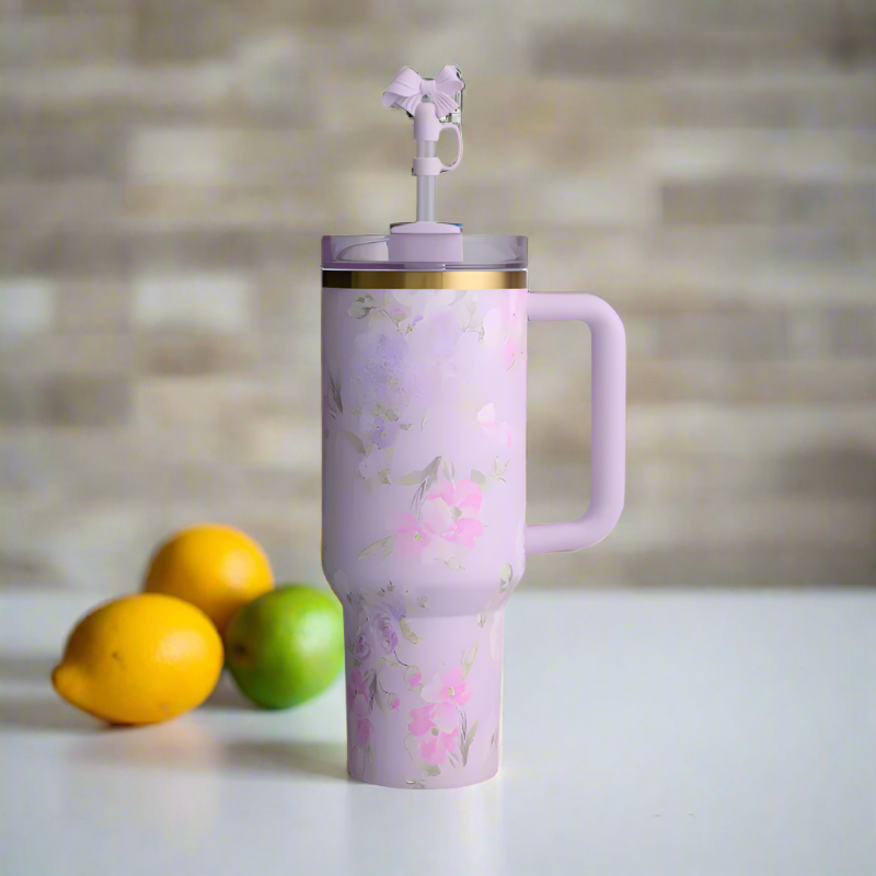 Experience the best of both worlds with our Floral Patterned Tumbler With Bow Straw Lid. Its exquisite floral design adds elegance to any drinkware collection, while its durable construction ensures long-lasting use. Plus, it can keep your favorite beverage at the temperature for hours, making it the ideal choice for any occasion.