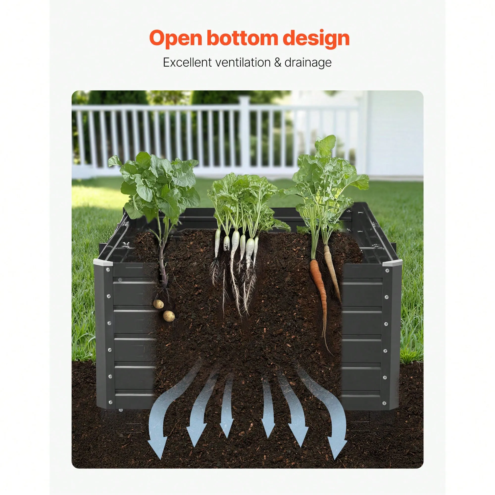 This raised garden bed offers a combination of spacious planting capacity and a stable structure. The open base supports water flow and soil interaction, while reinforced panels maintain shape under pressure. Multiple size options provide flexibility for different gardening needs.