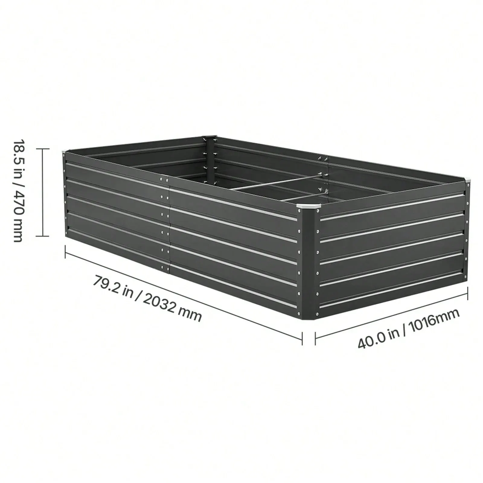 This Galvalume Steel Raised Garden Bed Open Bottom Planter Box is designed to support organized outdoor planting with a spacious rectangular layout. The 6.7x3x1.5 ft size offers enough room for growing a variety of plants, including vegetables, herbs, and flowers. Its open bottom design allows direct contact with ground soil, supporting natural drainage and root expansion.