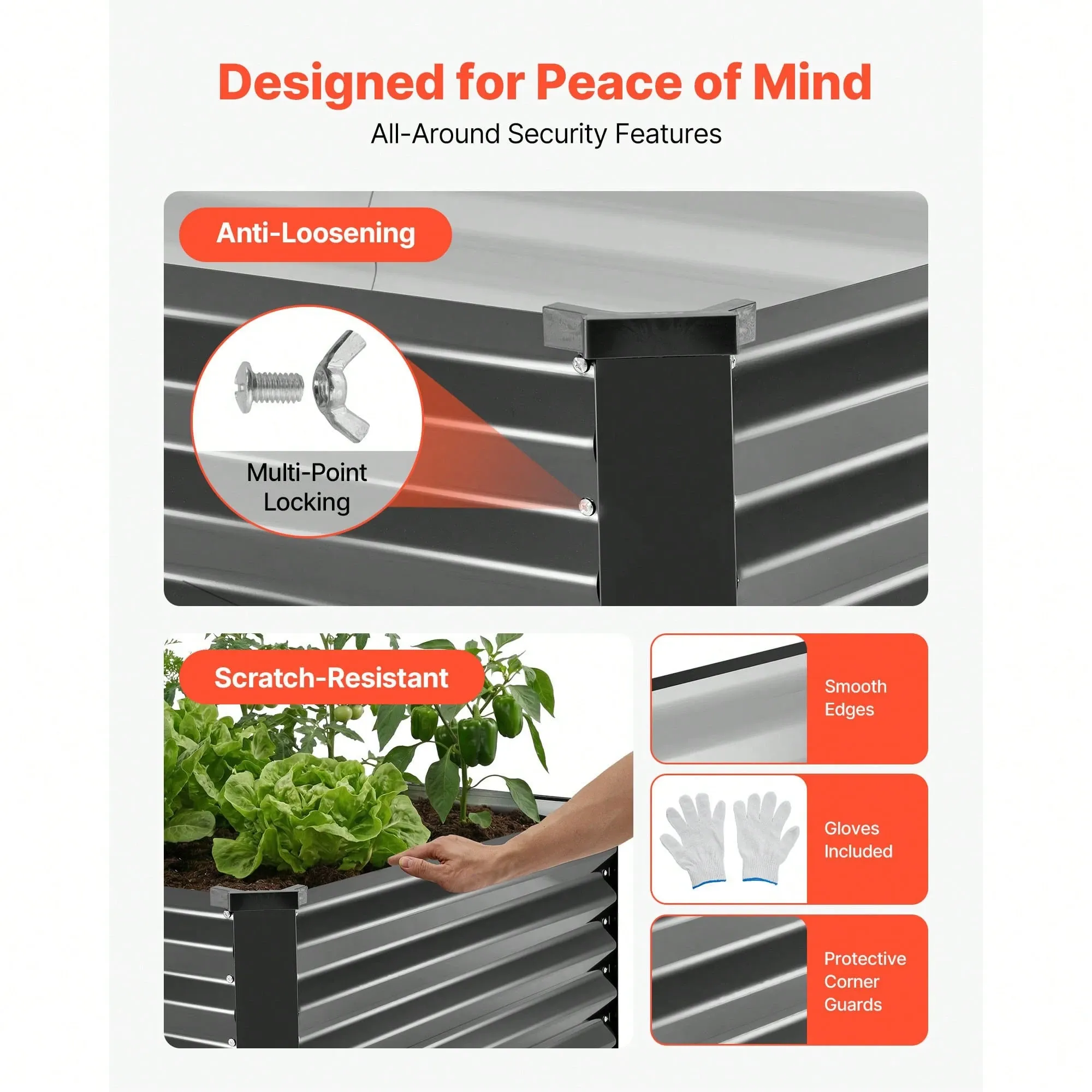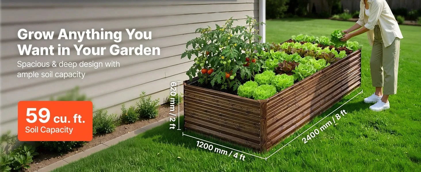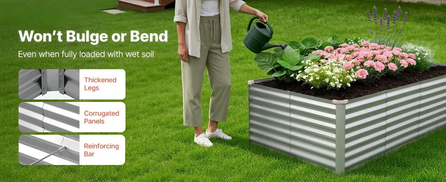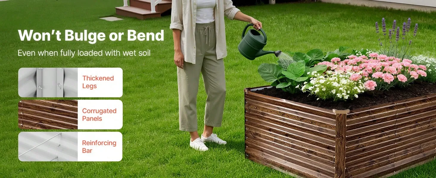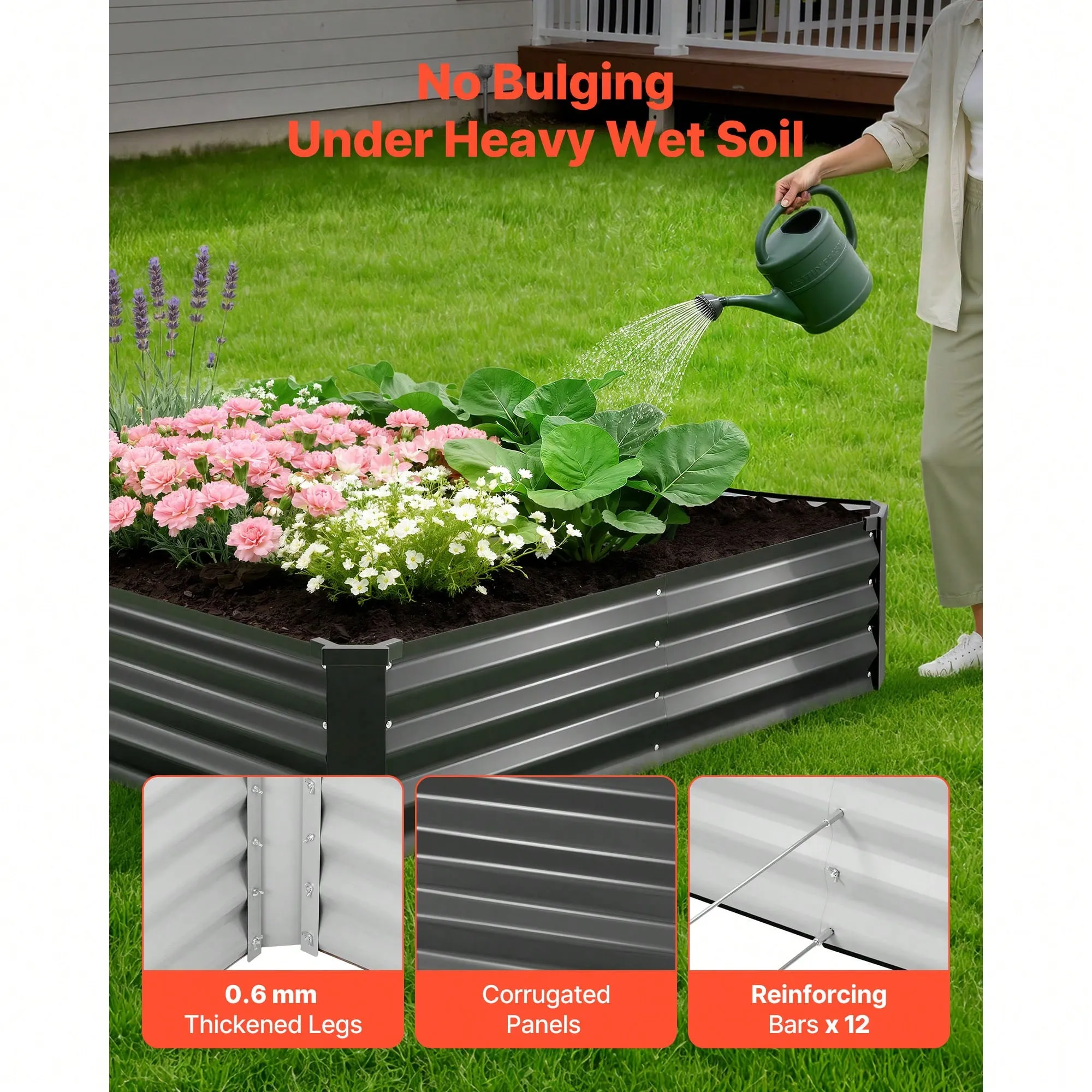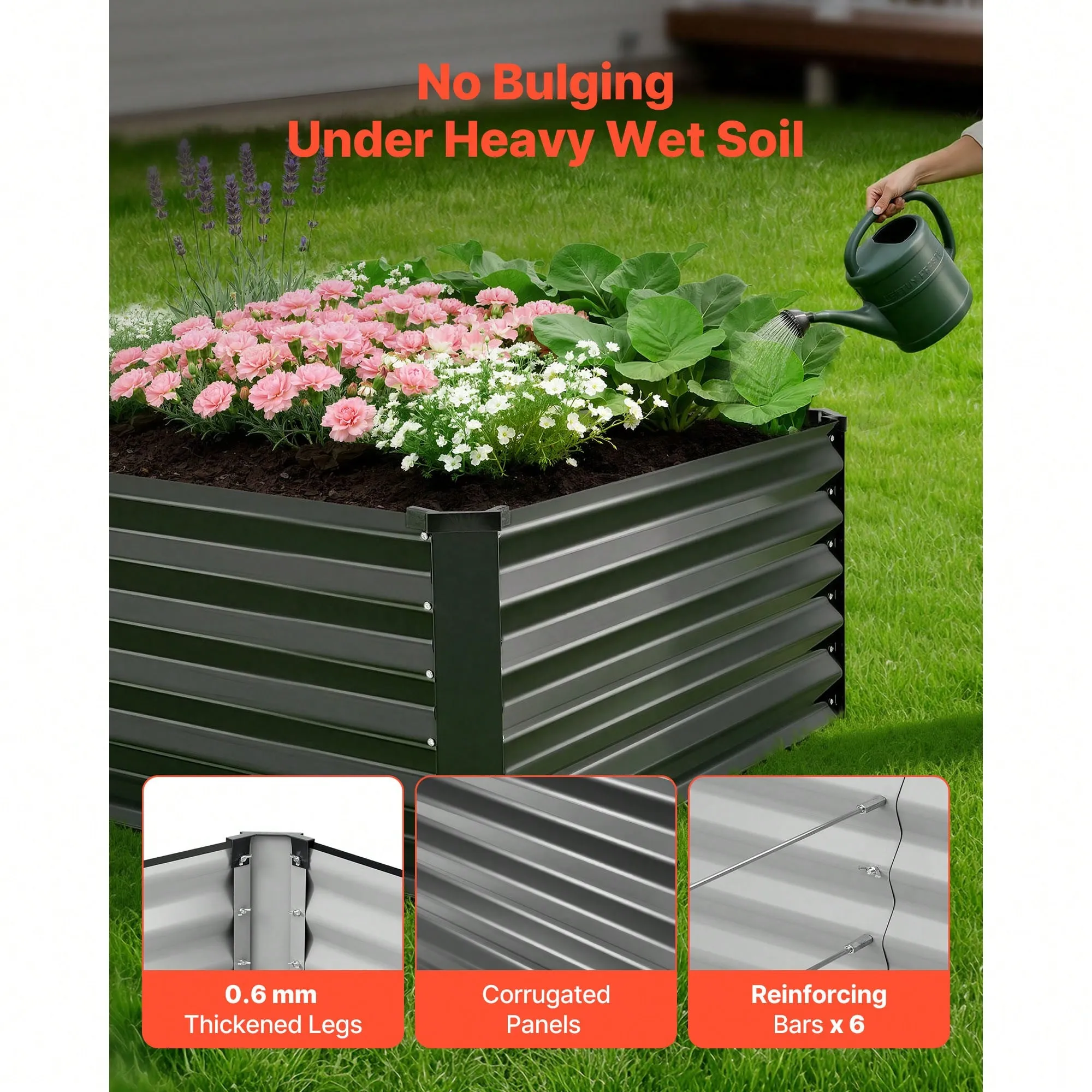 This raised garden bed offers a combination of spacious planting capacity and a stable structure. The open base supports proper water flow, while the reinforced metal panels maintain form under pressure. Multiple configuration options provide flexibility for different gardening setups.