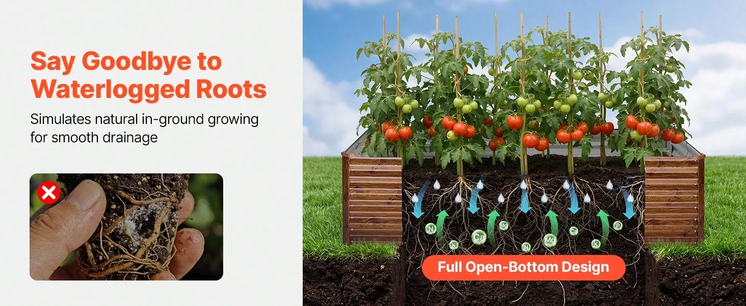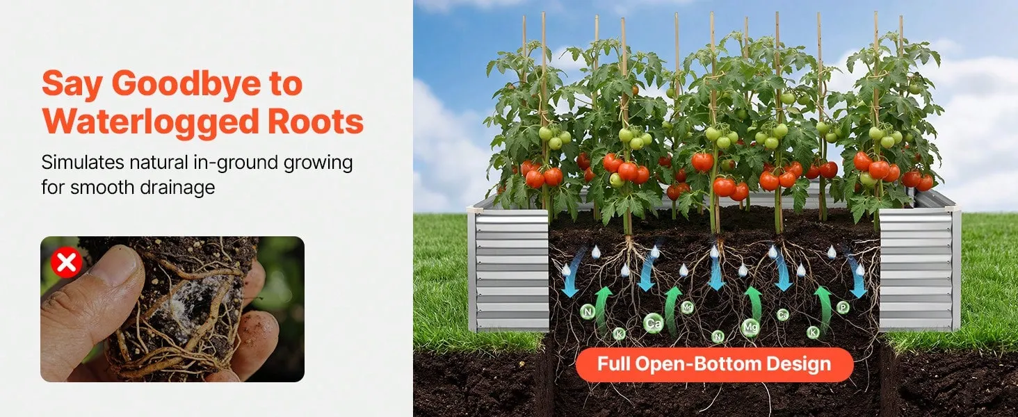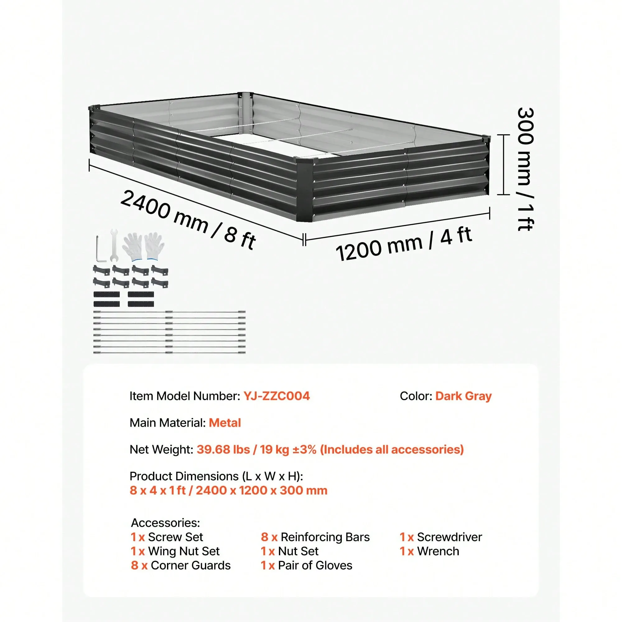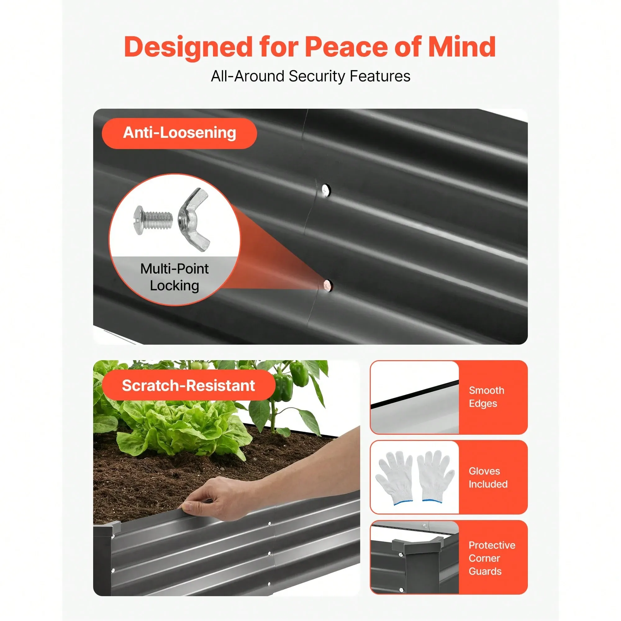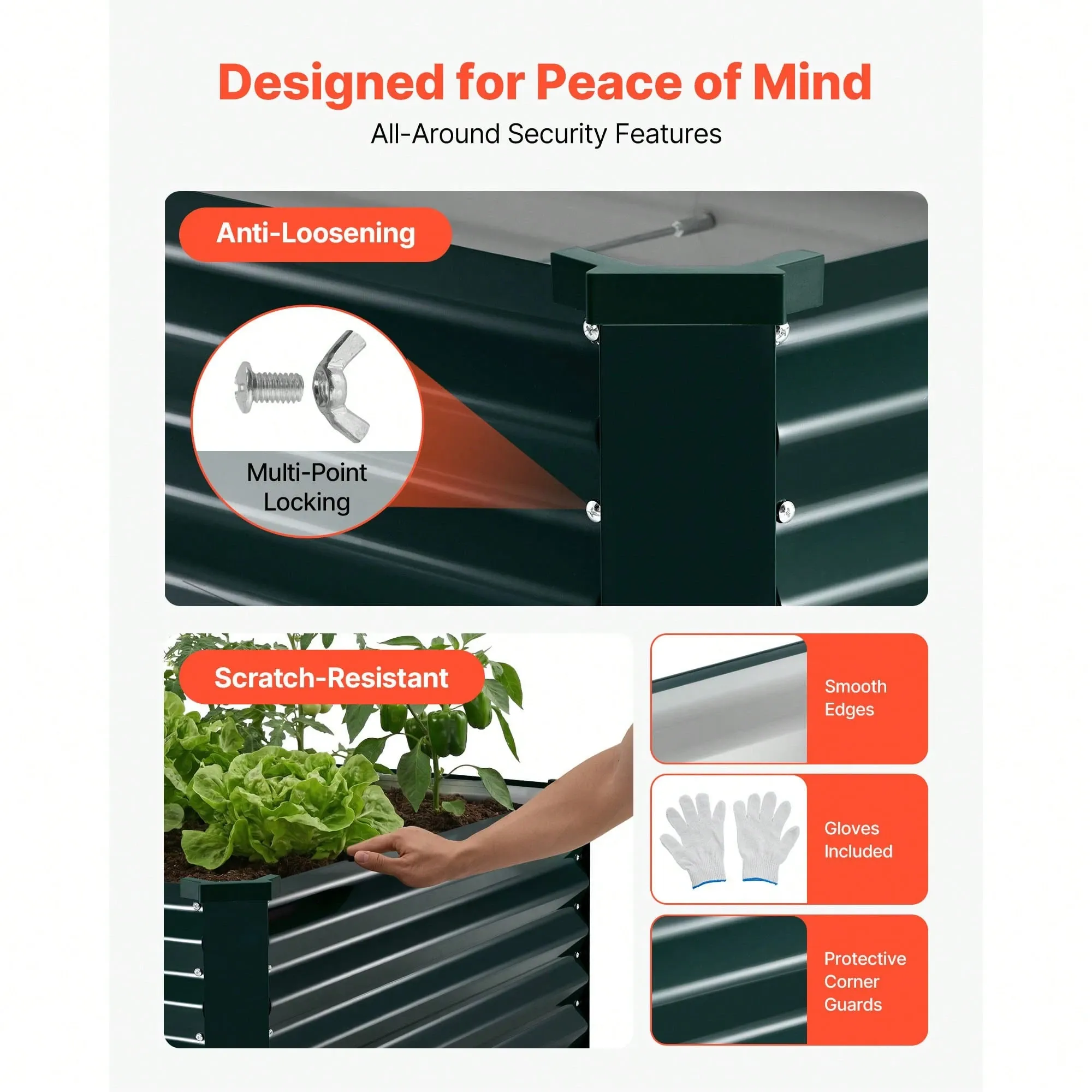 This raised garden bed offers a combination of spacious planting capacity and a stable structure. The open base supports proper water flow, while the reinforced metal panels maintain form under pressure. Multiple configuration options provide flexibility for different gardening setups.