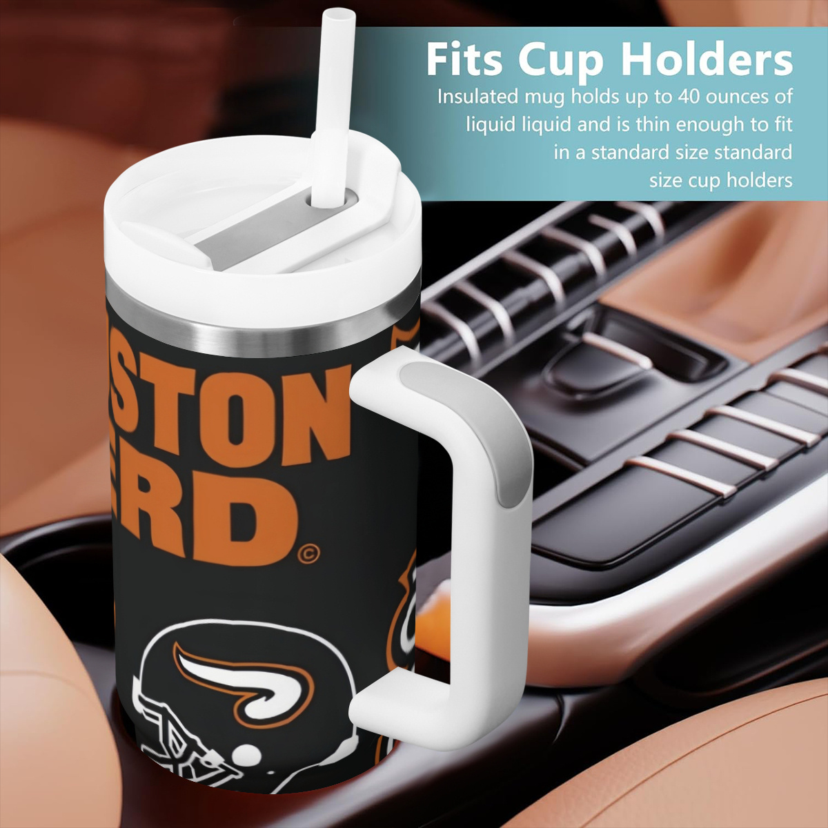 This Houston Texans Themed 40oz Stainless Steel Travel Tumbler is suitable for use in cars, offices, homes, and travel environments. It supports cold beverages such as water, iced drinks, and similar refreshments.