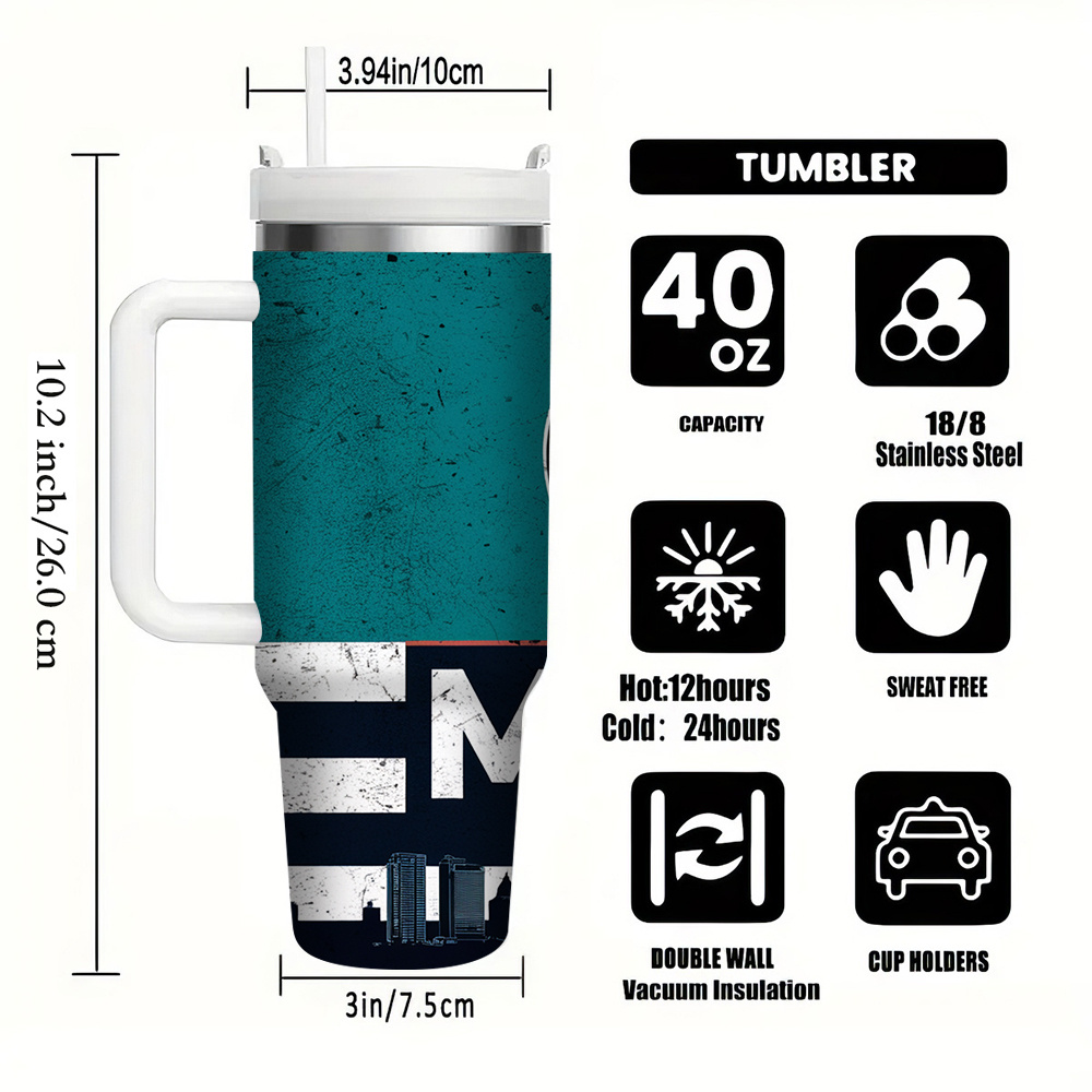The Miami Football Team Tumbler is designed to pair themed expression with daily usefulness. It features stainless construction, an included straw, and an insulated center. It offers enough volume for longer hydration sessions while remaining compact for standard transport.