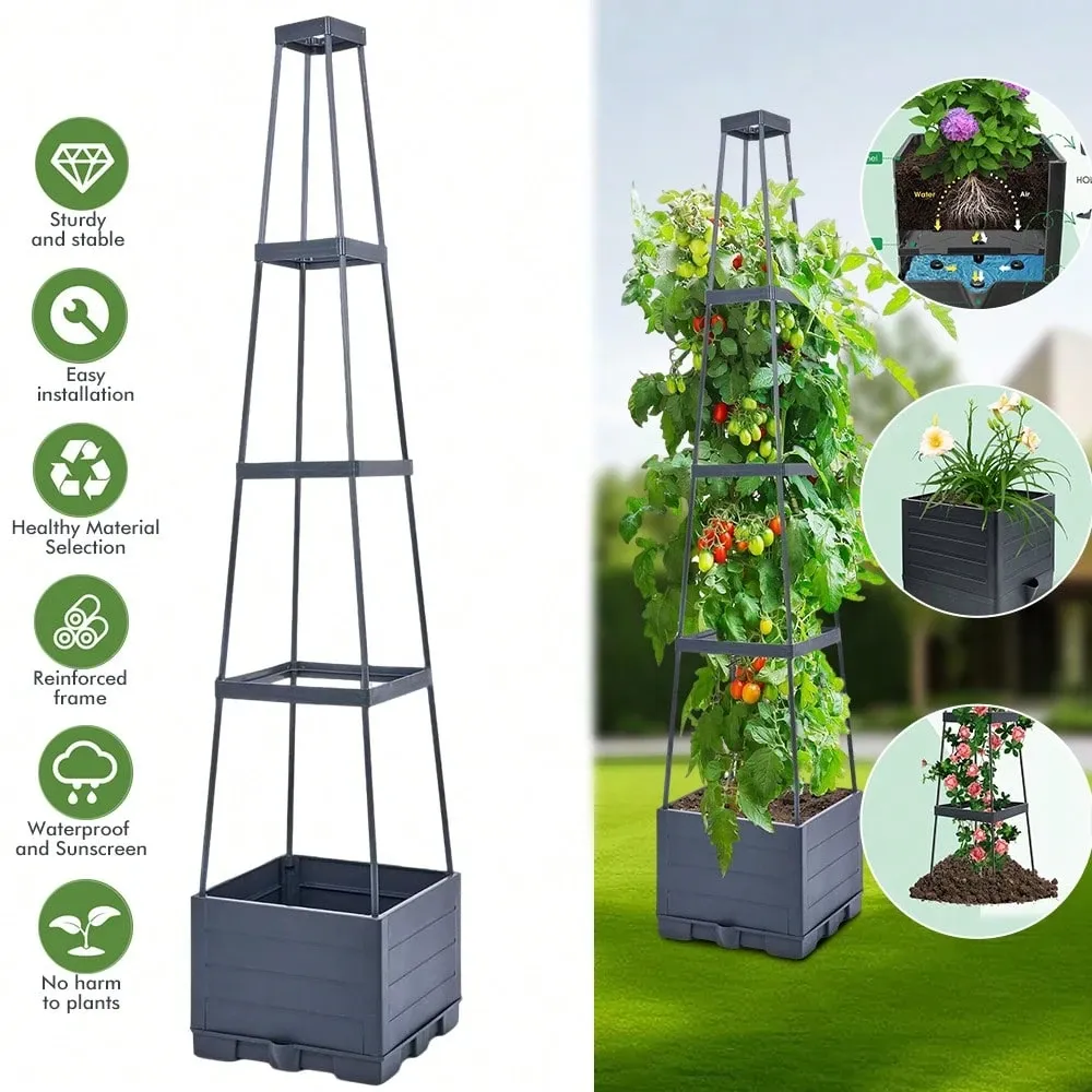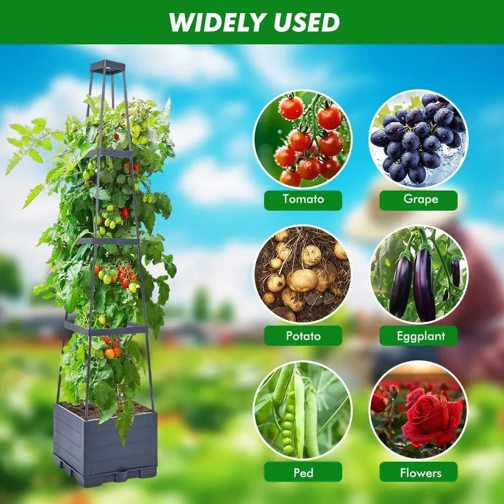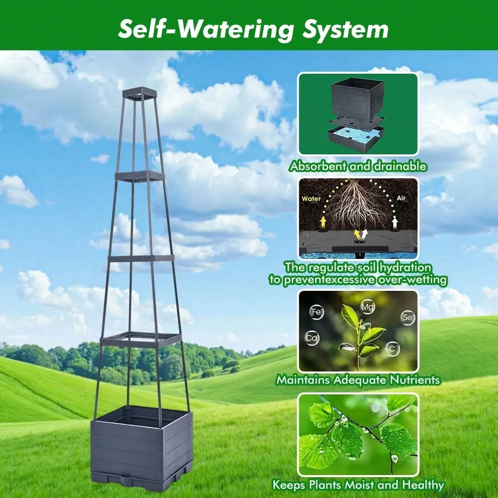 This Self Watering Vertical Garden Planter With Trellis For Climbing Plants is designed for efficient planting in compact spaces. The 4-tier structure allows multiple plants to grow in a vertical arrangement, helping maximize space usage in patios, balconies, and gardens. The integrated trellis provides support for climbing plants such as tomatoes, grapes, and flowering vines.