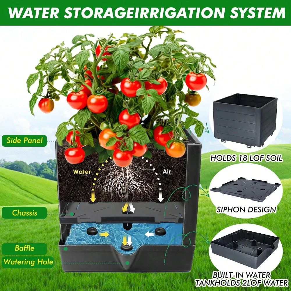 The planter includes a self-watering feature that helps maintain consistent moisture levels in the soil. This supports steady plant growth while reducing the need for frequent watering. The raised planter design keeps plants organized and easy to manage.