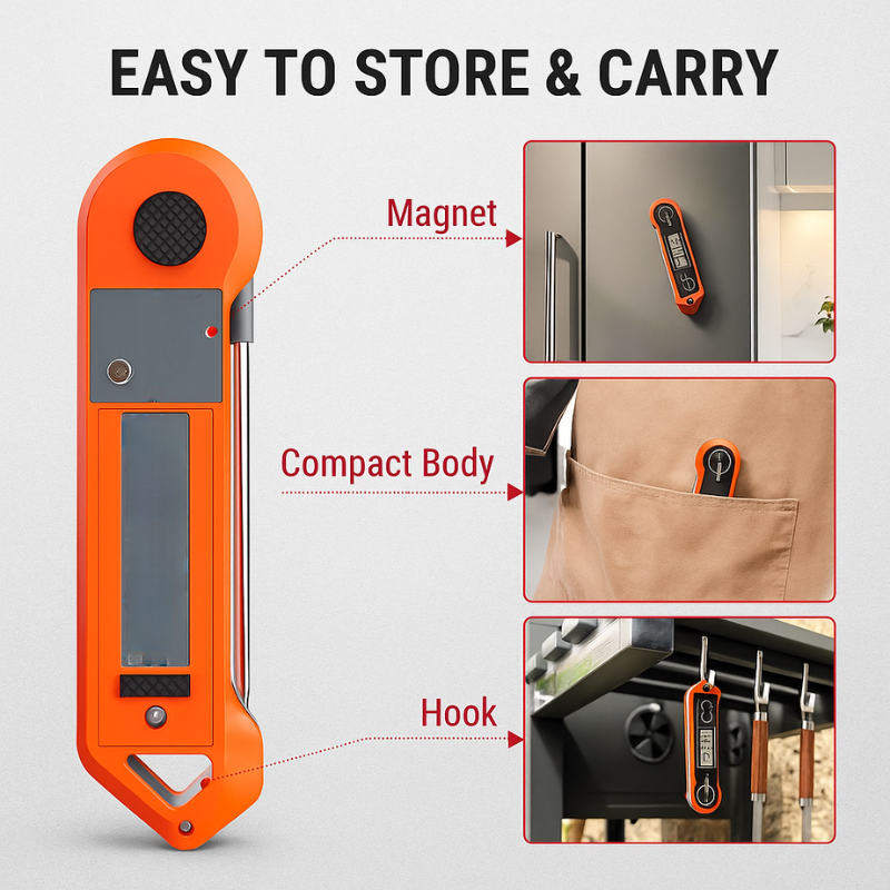 With a stainless steel probe and ultra-fast response time, this thermometer ensures precision when handling various recipes. The ergonomic design and convenient storage options add to its practicality, making it a reliable tool for daily cooking needs.